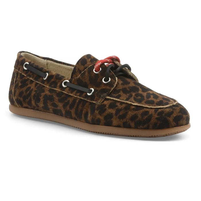 Der Andrea Sabatini 5120 verkörpert die perfekte Kombination aus lässiger Eleganz und zeitgenössischer Kühnheit. Diese Samt Leder Bootsschuhe, sank in einem zeitlosen Leopardenmuster, kombinieren Raffinesse und Spaß Geist, Signatur der Marke. Ihr Wildleder Obermaterial, weich und langlebig, umarmt die Konturen des Fußes für optimalen Komfort, während ihr Lederfutter, abnehmbar, garantiert dauerhafte Frische. Die Ledersohle, kombiniert mit einer weichen Lederaußensohle, sorgt für einen leichten und natürlichen Spaziergang, ideal für Sommerausflüge oder Momente der Entspannung. Mit einem dezenten 10 mm Absatz passen sich diese Modelle allen Körperformen an, ohne auf Stil zu verzichten. Sorgfältige Details, wie Metallösen und kontrastierende Schnürsenkel, sublimieren dieses trendige Modell, entworfen für Frauen, die einen schicken und kühnen Look ohne Kompromisse suchen. Ein Muss für diejenigen, die Mode und Persönlichkeit zu heiraten lieben. -