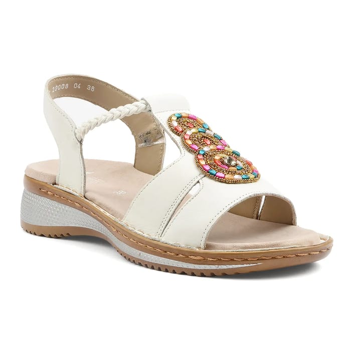 Die Ara Marke Hawai 2.0 Sandalen sind für erhöhten Gehkomfort und ein modernes Design konzipiert. Diese flachen Ledersandalen und Schmuckeinsätze sind perfekt für Sommertage. Das Oberteil und das Oberteil sind aus Leder, während das Futter auch aus Leder besteht. Die Innensohle ist aus Samtleder gefertigt und sorgt für ein angenehmes Tragegefühl. Die Laufsohle ist aus Synthetik für optimale Leichtigkeit und Atmungsaktivität. Die Ferse misst 40 mm. Die Details der Ledersandale sind sichtbar, einschließlich der detaillierten Nähte an den Rändern. Die Sandalen sind in weiß erhältlich und eignen sich ideal für Strandtage, Feiertage oder den Alltag. -
