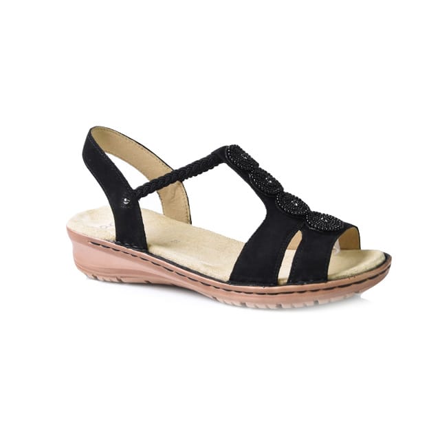 Die Sandalen Hawaii G der Marke Ara sind elegante Schuhe für Abende, Events und Büro. Diese schwarzen Nubuck Sandalen verfügen über einen schicken und eleganten Stil dank ihrer Slingbacks Design. Das Oberteil und das Oberteil sind aus Nubuk gefertigt, einem weichen und strapazierfähigen Material, während das Futter aus Textil besteht, um einen erhöhten Gehkomfort zu bieten. Die Innensohle ist auch aus Textil gefertigt, was zur Weichheit des Ganzen beiträgt. Die Laufsohle ist aus Gummi gefertigt, was einen festen Halt am Boden garantiert. Die Ferse misst 35 mm, was ideal für formelle Anlässe ist. Die Ara Marke Hawaii G Sandalen sind entworfen, um Stil, Raffinesse und Mode zu bieten, die die Erwartungen der modernen Frau erfüllen. -