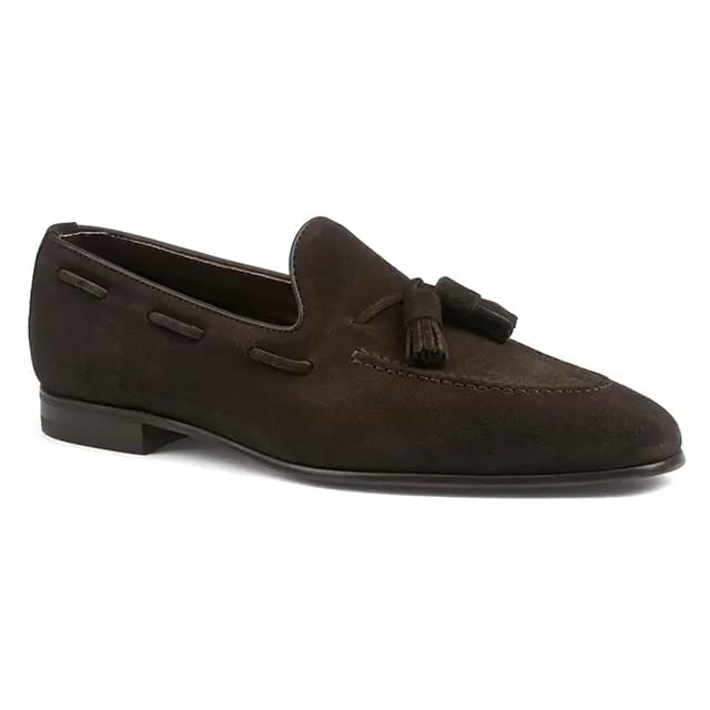 Die Berwick Torfbraten sind Luxusschuhe, die Raffinesse und Komfort kombinieren. Diese klassischen Laiber sind für formelle Anlässe konzipiert, egal ob es sich um einen Abend oder eine wichtige Veranstaltung handelt. Ihr Samt Veloursleder Obermaterial und Obermaterial bieten eine luxuriöse Textur, während das Lederfutter für extra Weichheit sorgt. Die Ledereinlegesohlen und -aussen garantieren Festigkeit und Haltbarkeit. Die Design-Details, wie die dekorativen Nähte entlang der Seiten, fügen ein elegantes Stilelement hinzu. Die Torfbraten sind in braun erhältlich, eine neutrale und raffinierte Farbe, die perfekt für eine schicke Produktpalette ist. -
