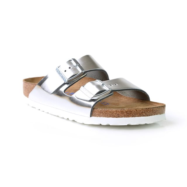 Die Birkenstock Arizona Sandalen sind lässige und komfortable Maultiere für Sommerausflüge. Ihre Lederoberteile und -oberteile sind mit Leder gefüttert und sorgen für ein luxuriöses Tragegefühl. Die Lederinnensohle sorgt für optimalen Komfort bei gleichzeitiger Leichtigkeit. Die weiße Gummisohle bietet Haltbarkeit und Verschleißfestigkeit. Die Ledermulde Details verleihen diesen Sandalen einen eleganten Touch. Die metallische Silberfarbe ist eine schicke Note, die sie perfekt für Sommerausflüge macht. Die Birkenstock Arizona Sandalen wurden für den Alltag entwickelt und eignen sich ideal für Ausflüge, Sommertage und Momente der Entspannung. -