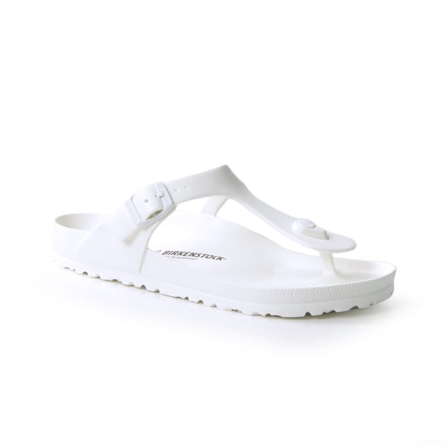 Entdecken Sie die Giza EVA R Sandalen von Birkenstock, ideal für heiße Sommertage. Entworfen für Strand und Entspannung, sind diese Sandalen leicht und atmungsaktiv und bieten unvergleichlichen Komfort. Ihre EVA-Sohle ist weich und flexibel, während die EVA-Sohle für ein Freifüßgefühl sorgt. Die Details dieses Paar Sandalen gehören synthetische Nu-Füße, so dass sie bequem und einfach zu reinigen. Die weiße Farbe ist ideal für sonnige Tage. Die Sandalen Giza EVA R sind eine perfekte Wahl für Strand- und Entspannungsliebhaber, die Komfort und Leichtigkeit ohne Kompromisse suchen. -