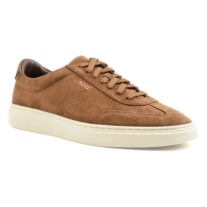 Die Kieran_Tenn_sdoBB Schuhe der Marke Boss gehören zum klassischen und vielseitigen Sortiment, ideal für den Büro-, Ausflugs- oder Alltag. Hergestellt in einem braunen Wildleder, bieten sie einen eleganten und nüchternen Look, hervorgehoben durch eine weiße Gummisohle mit schlanken Linien. Das Oberteil aus Samtleder bringt einen Hauch von weicher, stilvoller Textur, während das Textilfutter und die Stoffinnensohle für optimalen Komfort den ganzen Tag sorgen. Die stilvolle Passform und Haltbarkeit des Modells machen es zu einem zuverlässigen Schuh für jedes Outfit, ob lässig oder dressig. Das Detail des Namens Boss in goldenen Buchstaben an der Seite verstärkt ihre Premium-Identität. -