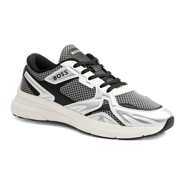 Die Owen Runn Schuhe der Marke BOSS sind vielseitige Schnürschuhe für Ausflüge, den Alltag und sogar das Büro. Ihr klassischer Stil macht sie perfekt für geschäftliche Anlässe, während sie auch für Sport oder Freizeitaktivitäten geeignet sind. Das textile und synthetische Oberteil bietet optimalen Komfort, während das textile Innenfutter für Wärmedämmung sorgt. Abnehmbare textile Einlegesohlen sorgen für zusätzliche Flexibilität. Die Gummisohlen sorgen für außergewöhnliche Haltbarkeit und einen guten Halt am Boden. Details wie der Textil- und Synthetik-Sneaker verleihen einen Hauch von Stil. Die Owen Runn sind in grau, einer neutralen und eleganten Farbe erhältlich. Die Schuhe verfügen über Passform, Komfort und Langlebigkeit als ihre wichtigsten funktionalen Vorteile. Die schwarzen Schnürsenkel sorgen für eine präzise Passform und optimale Stabilität. Das BOSS Logo wird sichtbar auf der Zunge und den Seiten der Schuhe dargestellt und verleiht so einen Hauch von Persönlichkeit. -