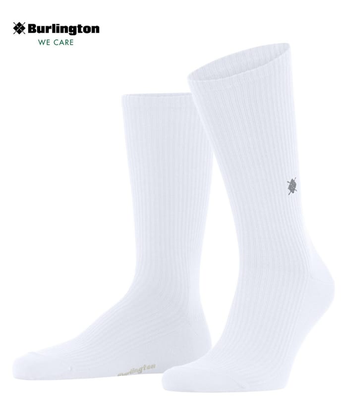 Die Socken M's BOSTON der Marke Burlington sind elegante und klassische City-Socken. Hergestellt aus 87% Bio-Baumwolle und 13% Polyamid, bieten sie außergewöhnlichen Komfort und Atmungsaktivität. Die Socken sind dünn und bequem, ideal für den täglichen Gebrauch, abends oder im Büro. Die weiße Farbe ist einfach und elegant, während das dezente Logo an der Seite einen Hauch von Persönlichkeit verleiht. Das Logo der Marke Burlington ist links oben im Bild zu sehen, ebenso wie der Slogan "WE CARE". Ein dezenter Text in der Nähe des Knöchels rundet das Set ab. -