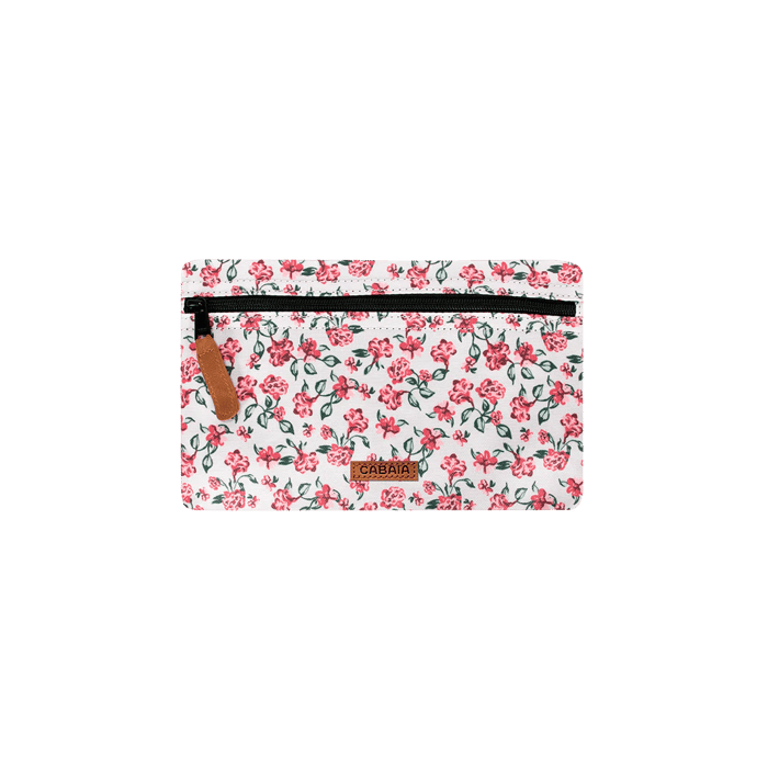 Die OXFORD STREET Kupplung der Marke Cabaia ist ein elegantes Accessoire für Partys, Events oder das Büro. Diese Tasche ist für eine einfache und bequeme Aufbewahrung konzipiert, mit einer Größe von 24 x 15 x 1,5 cm. Der Beutel besteht aus 100% recyceltem Polyester für die Oberseite und den Vorbau, und 100% Polyester für das Futter. Die Tasche hat ein florales Design mit rosa Blüten und grünen Blättern auf weißem Hintergrund. Der Reißverschluss ist schwarz und mit einem braunen Ledergriff zum einfachen Öffnen ausgestattet. Ein kleines Lederetikett im unteren Zentrum zeigt den Namen der Marke "CABAIA" in Großbuchstaben an. Die OXFORD STREET Tasche ist ein schickes und elegantes Accessoire, um Ihr Unternehmen effizient und elegant zu organisieren. -
