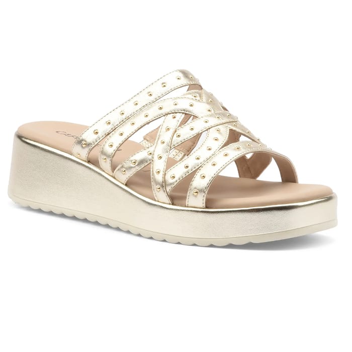 Diese Eileen Maultiere der Marke Caprice vereinen Eleganz und Funktionalität für Ausflüge oder den täglichen Gebrauch. Entworfen in Gold-Metallic-Leder, sie erfassen das Licht und bringen eine raffinierte Note, um Ihre Sommer-Outfits. Ihr synthetisches Futter sorgt für optimalen Komfort, während die Gummisohle und der 50 mm Absatz perfekte Stabilität und Unterstützung für einen längeren Lauf bieten. Die Innensohle aus Leder verleiht unterdessen zusätzliche Weichheit unter dem Fuß. Perfekt für Momente der Entspannung oder mehr gekleidete Anlässe, kombinieren diese Maultiere lässigen Stil mit kompromisslosem Komfort. Ein Muss, um Ihre Sommer-Looks mit Panache zu sublimieren. -