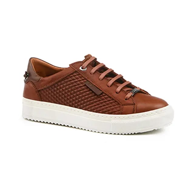 Der Camel der Marke Carmela setzt sich als trendiger und eleganter Schuh ein, perfekt an den Alltag angepasst. Hergestellt aus hochwertigem Cognac-Leder verfügen diese Sneaker über ein geschmeidiges Lederoberteil mit einem gesteppten Muster an den Seiten, das einen Hauch von Raffinesse bringt. Das Innenfutter aus Leder sorgt den ganzen Tag über für optimalen Komfort, während die abnehmbare Innensohle eine Personalisierung des Komforts ermöglicht. Die synthetische Laufsohle bietet dezente Stabilität, ergänzt durch ein Lederoberteil, das natürlich die Form des Fußes umarmt. Braune Schnürsenkel und Silberarbeiten verbessern das schlanke Design, während ein kleines metallisches Emblem in der Nähe der Ferse einen unverwechselbaren Touch verleiht. Dieses Modell kombiniert Mode, Komfort und Vielseitigkeit, ideal für Spaziergänge und Freizeitausflüge. -