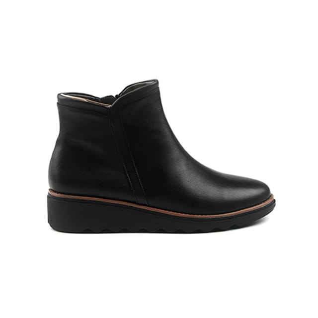 Die Sharon Heights Stiefel der Marke Clarks sind für einen eleganten und lässigen Stil konzipiert. Das Obermaterial und das Obermaterial aus schwarzem Leder bieten ein raffiniertes Erscheinungsbild, während die um die Ferse und die Sohle sichtbaren Nähte einen Hauch von Raffinesse verleihen. Ein schwarzes Leder Detail kontrastiert mit der Gummisohle rundet das Set ab. Die Stiefeletten verfügen über ein Textilfutter und bieten optimalen Komfort. Sie sind dank ihres vielseitigen Stils und eleganten Designs ideal für den täglichen Gebrauch, Ausflüge oder sogar für die Arbeit. Die Fersen sind 35 mm groß und bieten eine bequeme Höhe, ohne die Beweglichkeit zu beeinträchtigen. Die Clarks Sharon Heights Stiefel sind eine intelligente Wahl für diejenigen, die eine perfekte Mischung aus Stil und Komfort suchen. -
