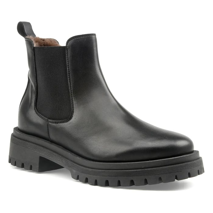 Die Beatles Schuhe der Marke Crown bieten einen schicken und zeitlosen Stil, perfekt für Bürooutfits, Abende oder jeden Tag. Entworfen in hochwertigem Leder, sind sie Teil einer eleganten und langlebigen Produktpalette. Die Lederdecke ist mit Lammfellwolle für optimalen Komfort gefüttert, während der Innenraum mit Schaffell für ein Gefühl von Wärme und Weichheit getrimmt wird. Die synthetische Gummisohle sorgt für gute Stabilität und erhöhte Haltbarkeit. Der Knöchelstiefel verfügt über einen Reißverschluss auf der Rückseite und elastische Elemente an den Seiten zum einfachen Anziehen. Mit einem 45 mm Absatz verbindet er Eleganz und Komfort. Seine minimalistischen Details rund um den Knöchel verstärken sein funktionales Erscheinungsbild und elegantes Design. Diese Schuhe passen sich an alle Arten von Einsatz, ob es sich um ein professionelles Outfit oder einen Abend in der Stadt. -