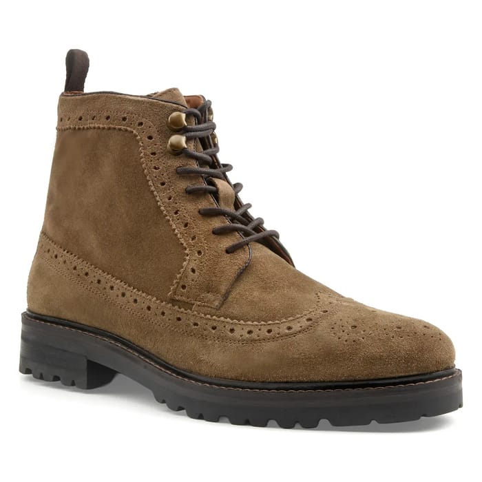 Die Stiefel Edinburgh der Marke Daniel kenneth vereinen Eleganz und Robustheit in einem Modell, ideal für Herbst und Winter. Hergestellt aus hochwertigem Samtleder, verfügen sie über ein taupe Wildleder Top mit ordentlichen Oberflächen, mit dekorativen Perforationen im Brogue-Stil am Ende verbessert. Eine hintere Zunge ermöglicht eine einfache Inszenierung, während runde Schnürsenkel und metallische Werkstücke einen strukturierten Touch bringen. Das Leder- und Textilinnenraum sorgt für dauerhaften Komfort, verstärkt durch eine Ledersohle, die natürlich den Fuß umarmt. Die schwarze Gummisohle mit robustem Obermaterial bietet hervorragenden Schutz und stabilen Halt, sowohl für Arbeits- als auch für Outdoor-Aktivitäten geeignet. Dieses lässige und langlebige Modell zeichnet sich als zuverlässiger Verbündeter für anspruchsvolle Tage aus. -