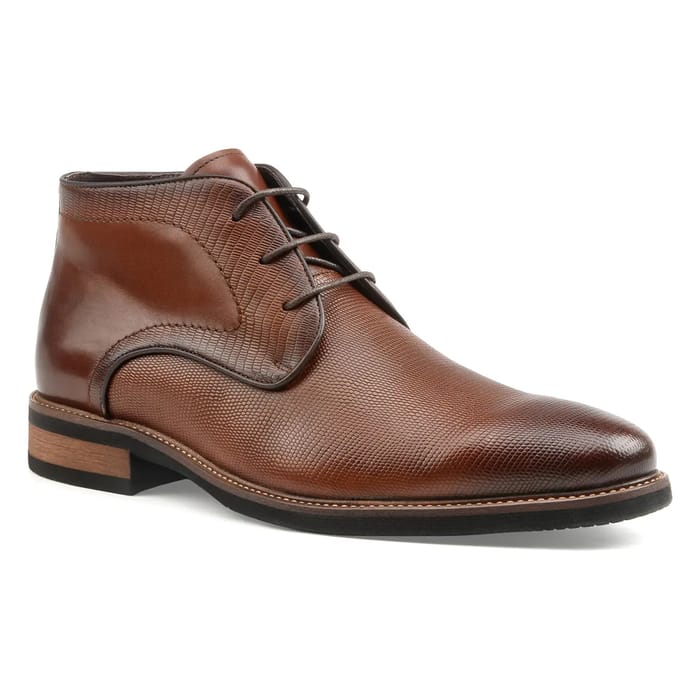 Die Stiefel Glasgow der Marke Daniel Kenneth sind elegante und lässige Stadtschuhe. Aus hochwertigem Leder gefertigt, verfügen diese Stiefel über ein Cognac Leder Obermaterial mit einem texturierten Muster, das einen Hauch von Stil verleiht. Die dunklen Schnürsenkel passieren Metallösen und verleihen diesen Stiefeletten einen Hauch von Raffinesse. Das Lederfutter sorgt für optimalen Komfort, während die Gummi- und Holzsohle soliden Schutz und außergewöhnliche Haltbarkeit bietet. Die Nähte rund um den Perimeter unterstreichen die Meisterschaft der Handwerkskunst. Die abgerundete Form der Ferse verstärkt das klassische Design. Die Glasgow Stiefel sind ideal für den täglichen Gebrauch, Ausflüge oder Arbeit, da sie sowohl eleganten Stil und absoluten Komfort bieten. -