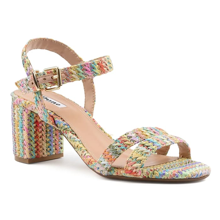 Entdecken Sie die MERISA, eine Sandale mit 70 mm Absatz, die von Dune für besondere Anlässe entworfen wurde. Diese elegante Sandale ist aus synthetischem Raffia gefertigt, das dem Ganzen einen Hauch von Natur und Raffinesse verleiht. Die Innensohle und Sohle sind ebenfalls aus Synthetik gefertigt und bieten optimalen Komfort bei gleichzeitiger Gewährleistung eines festen Halts. Die MERISA ist eine mehrfarbige Sandale, die mit ihren hübschen mehrfarbigen Trägern hervorsticht, die das Set mit Schattierungen von Rosa, Blau, Gelb, Grün und Orange verschönern. Ein schönes goldenes Vorhängeschloss auf dem verstellbaren Schultergurt verleiht dieser schicken Sandale einen Hauch von Raffinesse. Die MERISA ist ideal für Abende, Zeremonien oder Bürobesuche, bei denen Sie einen eleganten Eindruck machen möchten. Die MERISA ist eine Sandale, die Komfort und Stil kombiniert, so dass Sie sich wohl fühlen und gleichzeitig stilvoll. -