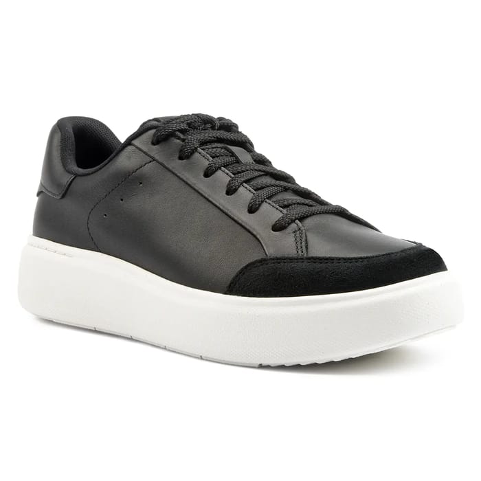 RTG von Fit Flop, ein elegantes und vielseitiges Paar Sneakers. Die Leder- und Wildlederoberteile bieten eine perfekte Kombination aus Stil und Komfort. Das Textilfutter sorgt für optimale Leichtigkeit und Flexibilität. Die textile Innensohle sorgt für ein natürliches Gehgefühl, während die synthetische Außensohle für Haltbarkeit und Verschleißfestigkeit sorgt. Die Leder Sneaker Details verleihen diesem Paar Sneaker einen Hauch von Raffinesse. Erhältlich in schwarz, ist der Fit Flop RTG ideal für alltägliche Anlässe, ob für Spaziergänge, Freizeit- oder Städtereisen. Sein modernes Design und seine funktionale Optik machen ihn zu einem vielseitigen und komfortablen Sneaker-Paar. -