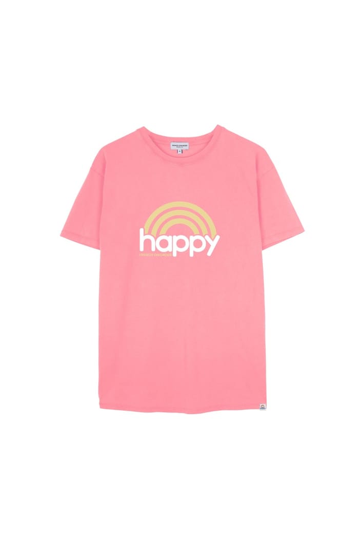 Das K's HAPPY T-Shirt der Marke French disorder ist ein lässiges Basic-Stück für den Alltag. Dieses kurzärmelige T-Shirt ist aus 100% Bio-Baumwolle gefertigt und bietet Atmungsaktivität und optimalen Komfort. Die rosa Farbe ist ein Hauch von Weichheit, die eine Note der Freude zu Ihrem Kleiderschrank hinzufügen wird. Das T-Shirt ist ideal für Freizeit, Arbeit oder einfach für einen Shopping-Tag. Das grafische Design mit dem Wort "glücklich" in kleinen weißen Buchstaben und einem Bogen aus gelben und orangen Linien ist ein schönes Detail, das Ihrem Look einen Hauch von Persönlichkeit verleiht. Das K's HAPPY T-Shirt ist ein unverzichtbares Stück für Ihre Grundgarderobe. -