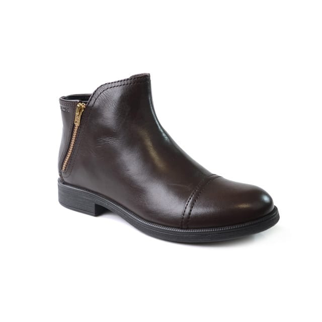 Die Stadt Stiefeletten Agata der Marke Geox sind für den täglichen Gebrauch konzipiert, Ausflüge im Büro. Sie bieten einen eleganten und lässigen Stil, ideal für geschäftliche Anlässe oder Abende in der Stadt. Die Stiefel sind aus braunem Leder gefertigt und bieten einen Hauch von Raffinesse und Klasse. Das Cap-Toe-Design und der niedrige Absatz verleihen einen Hauch von Eleganz, während der seitliche Reißverschluss ihn einfach anpasst. Die Agata Geox Knöchelstiefel kombinieren Komfort, Stil und Schutz mit einer atmungsaktiven Sohle, die von den ersten Schritten an optimalen Komfort garantiert. Die gepflegten Nähtdetails und das glatte Finish des Schuhoberteils sorgen für einen Hauch von Qualität und Pflege. Die Agata Geox Stiefel sind perfekt für Gelegenheiten, wenn Sie sich elegant und anspruchsvoll präsentieren möchten, während Sie bequem und praktisch bleiben. -