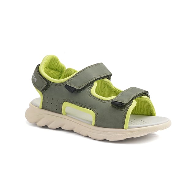 Die Geox Airadyum sind lässige, sommerliche flache Sandalen für Komfort und Freiheit. Ihr synthetisches Oberteil, ausgestattet mit Perforationen für optimale Atmungsaktivität, garantiert ein angenehmes Tragen. Die Lederaußensohle bringt extra Weichheit, während die Gummiaußensohle eine solide Basis bietet. Die zwei verstellbaren Haken- und Laschenleisten ermöglichen eine sichere Befestigung. Die Airadyum sind in grün erhältlich, eine Farbe ideal für Ferien oder Familienausflüge. Entworfen für Kinder, diese Sandalen sind perfekt für Strandaktivitäten, Familienausflüge oder Strandtage. -