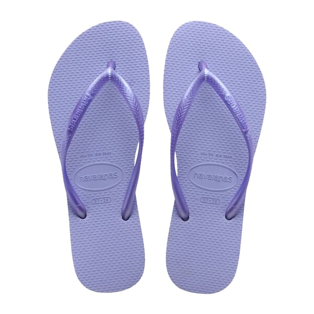 Die Havaianas Slim Flip Flops sind leichte, atmungsaktive Sommersandalen für Entspannung. Hergestellt mit synthetischen Sohlen und Oberteilen, bieten sie Benutzerfreundlichkeit und eine komfortable Passform. Die barfuß synthetischen Details verleihen diesen Sandalen einen Hauch von Stil. Die lila Farbe ist eine perfekte Option für sonnige Tage. Die Havaianas Slim Flip-Flops sind ideal für Strand, Sommer oder eine einfache Entspannung. Die Maße dieser Sandalen sind 9-10 US/23-24 cm. -