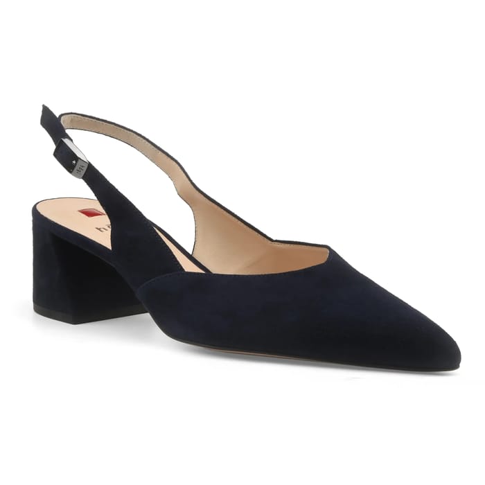 Diese Schleuderpumpen Hogl kombinieren zeitlose Eleganz mit dezenter Raffinesse, um jeden Anlass zu verbessern. Entworfen in einem außergewöhnlich weichen marineblauen Wildleder-Top, umarmen sie die Form des Fußes mit sofortigem Komfort, während ihr Lederfutter und ihre Lederinnensohle für optimale Atmungsaktivität sorgen. Der 50 mm Absatz, sowohl stabil als auch stilvoll, hebt die Silhouette, ohne auf Komfort zu verzichten, ideal für Abende, geschäftliche Veranstaltungen oder Tage im Büro. Ein Samt-Detail auf dem Lederarmband verleiht einen Hauch von Luxus, während eine dezente Metallschnalle den Gurt um den Anker sichert, indem sie Funktionalität und Ästhetik kombiniert. Die synthetische Sohle, verstärkt durch saubere Nähte, garantiert eine erhöhte Haltbarkeit. Perfekt integriert in das schicke und elegante Sortiment von Hogl, verkörpern diese Pumpen die perfekte Mischung aus Stil und Raffinesse, für eine moderne und zeitlose Garderobe. -