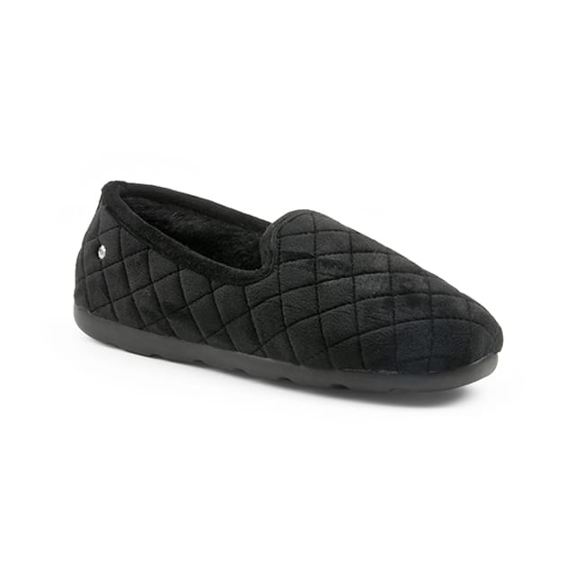 Hausschuhe Isotoner 97383: angenehmer, warmer, schwarzer Samt.