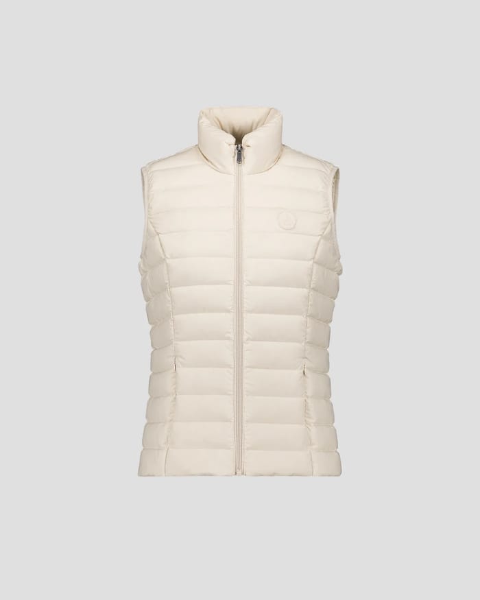 Die W's GRENADA Weste der Marke Jott vereint Eleganz und Funktionalität zu einem zeitlosen Winteroutfit. Entworfen in einem 100% Polyamid Material, bietet es konstante Wärme dank seiner horizontalen gepolsterten Abschnitte, die eine effektive Isolierung gewährleisten. Seine ärmellose Passform und sein hoher Kragen erhöhen den Schutz vor Witterungseinflüssen. Das elegante Design in off-white, hervorgehoben durch einen durchgehenden Reißverschluss, unterstreicht seine Leichtigkeit und Einfachheit. Ein kleines rundes Abzeichen in der Nähe der linken Brust rundet sein gepflegtes Erscheinungsbild ab. Ideal für Outdoor- oder Alltagsaktivitäten passt diese Weste perfekt in ein lässiges Outfit und bietet im Winter optimalen Komfort. -