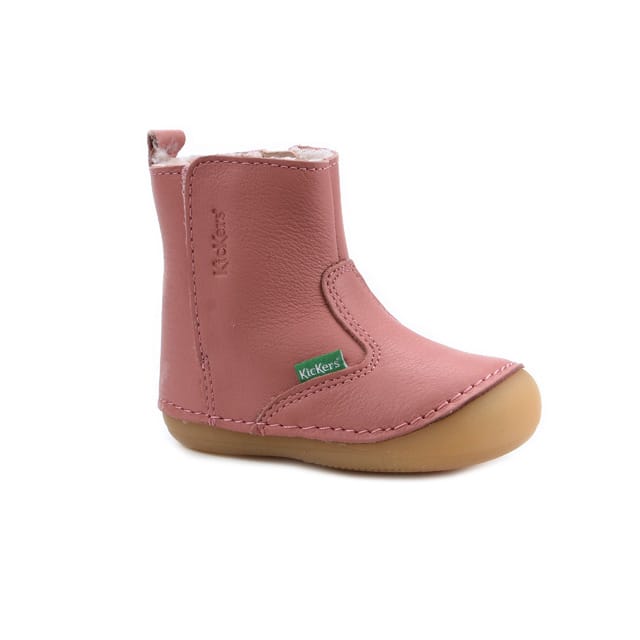 Der Socool Knöchelschuh von der Marke Kickers ist ein Schuh für Babys oder Kleinkinder, der auf Komfort und Wohlbefinden ausgelegt ist. Dieser Stiefel aus rosa Leder verfügt über ein synthetisches Wollfutter, um die Füße warm zu halten, und eine Innensohle aus synthetischer Wolle für ein weiches Tragegefühl. Die Gummiaußensohle bietet soliden Schutz und Flexibilität, um den natürlichen Bewegungen des Fußes zu folgen. Der Stiefel wird durch ein Leder-Detail ergänzt, das einen Hauch von Raffinesse verleiht. Die rosa Farbe ist eine charmante Option für kleine Jungen oder Mädchen. -