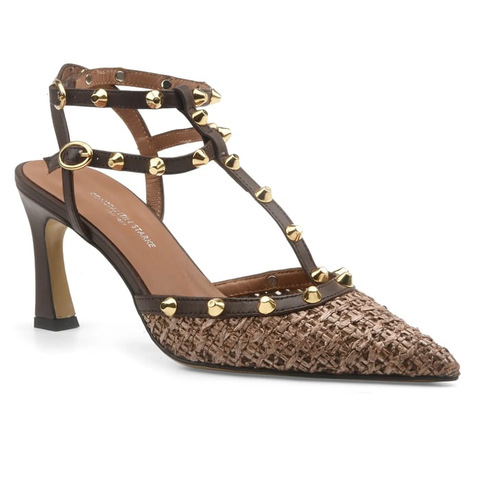 Diese Lana Pumpen von Konstantin Starks kombinieren elegant Eleganz und Kühnheit, für einen Stil, der sich von den ersten Sekunden abhebt. Entworfen aus seidigem Leder und mit Raffia verstärkt, bieten sie eine raffinierte und doch natürliche Textur, perfekt zum Sublimieren eines Abendoutfits oder zum Eindruck bei einer Veranstaltung. Ihr zeitloses und zugleich modernes Slingback-Design zeigt stilvolle Details: Leder- und Raffia-Träger, die den Knöchel anmutig umarmen, und eine hochwertige Ledersohle, die dezent mit dem Markennamen geprägt ist. Der 70 mm Absatz, sowohl stabil als auch schlank, bringt einen Hauch von Höhe, ohne auf Komfort zu verzichten, ideal für die Kombination von Charme und Leichtigkeit im Büro wie am Abend. Die braune Palette, sowohl tief als auch zeitlos, passt sich jedem Anlass an, während die handwerklichen Oberflächen, Signatur der Marke, machen es einzigartige Stücke, für Fashionistas auf der Suche nach Ausnahme entworfen. Konstantin Starks erfindet die Kunst des High-End-Schuhes neu, wo jedes Detail eine Geschichte der Handwerkskunst und der Leidenschaft für Mode erzählt. -