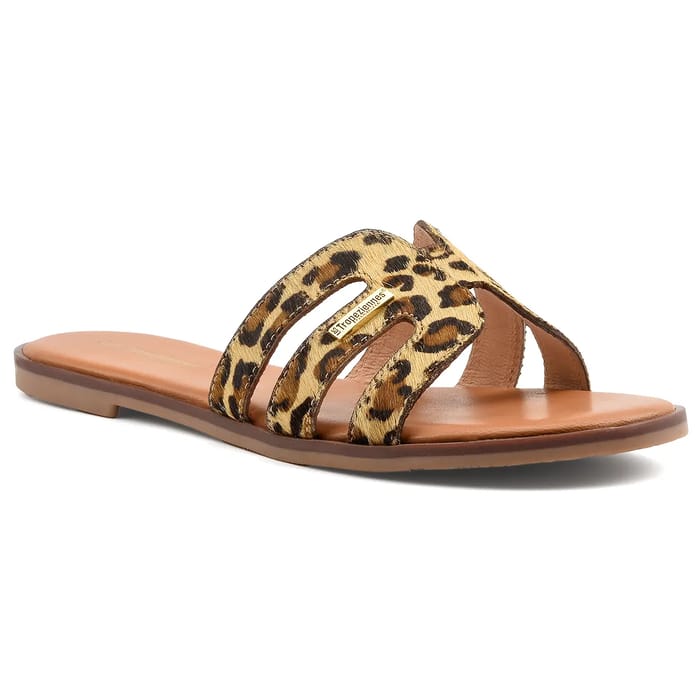 Les Tropeziennes präsentiert die HAMIGAPO, ein Paar entspannte und komfortable Maultiere für den Sommer. Diese Pelzsandalen, mit ihrem Maultier-Stil, sind perfekt für Ausflüge, tägliche oder sonnige Entspannung. Das haarige Oberteil und Obermaterial verleihen einen einzigartigen und stilvollen Look, während das Lederfutter und die Lederinnensohle für optimalen Komfort sorgen. Die Gummisohle sorgt für außergewöhnliche Leichtigkeit und Flexibilität. Die HAMIGAPO sind in einer hübschen Leopardenfarbe erhältlich, die Ihren Sommeroutfits einen Hauch von Fantasie verleihen wird. Mit ihrem trendigen und einfach zu tragenden Stil ist die HAMIGAPO eine großartige Option für Frauen, die moderne Sandalen für den Sommer suchen. -
