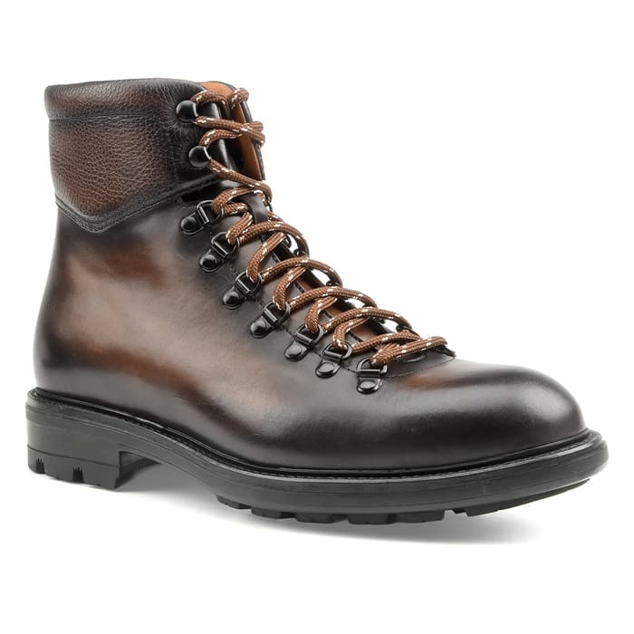 Die ARMY Stiefeletten der Marke Magnanni sind für Outdoor-Aktivitäten im Herbst und Winter konzipiert. Diese robusten und lässigen Stiefel sind ideal für Outdoor-Ausflüge, Arbeiten oder Wandern. Ihre dunkelbraunen Leder und leichteren Schnürsenkel bieten eine elegante Note, während ihr funktionales Design für optimalen Komfort sorgt. Das Oberteil aus Leder ist hart und strapazierfähig, während der Absatz für zusätzlichen Schutz verstärkt ist. Der Kragen ist auch für eine bessere Isolierung und Unterstützung ausgekleidet. Die Lederschnüre sind verstellbar und die Metallrollos sorgen für einen präzisen Halt. Die schwarzen Gummisohlen sind so konzipiert, dass sie dem Wetter standhalten und einen soliden Schutz bieten. Ihr raues Sohlenmuster sorgt für guten Halt auf rutschigen Böden. Die Magnanni ARMY Stiefel sind daher perfekt für Outdoor-Ausflüge, bei jedem Wetter. -