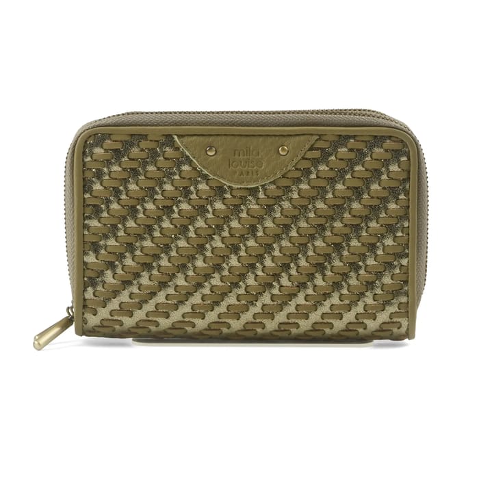 Dieses SISOL Portemonnaie der Marke Mila Louise vereint Eleganz und Funktionalität, um sich an all Ihre täglichen Bedürfnisse anzupassen. Entworfen in einem funktionalen und stilvollen Stil, zeichnet sich dieses Khaki-Modell durch sein strapazierfähiges Polyester-Futter aus, ideal zum Schutz Ihrer Münzen und Kreditkarten. Sein elegantes Design, gekennzeichnet durch ein strukturiertes Muster und einen subtil reflektierenden metallischen Touch, verleiht ihm einen Reiz, der sowohl modern als auch zeitlos ist. Der dezente und dennoch effiziente Goldreißverschluss garantiert eine optimale Aufbewahrung Ihrer Habseligkeiten, während ein Lederpatch mit der Gravur "mila LOUISO PARIS" einen Hauch von Authentizität und Raffinesse verleiht. Perfekt für Ihren Pendler oder Ihre tägliche Organisation, diese Geldbörse verbindet Haltbarkeit und Sicherheit, für ein wesentliches Accessoire, das sowohl praktisch als auch elegant ist. -