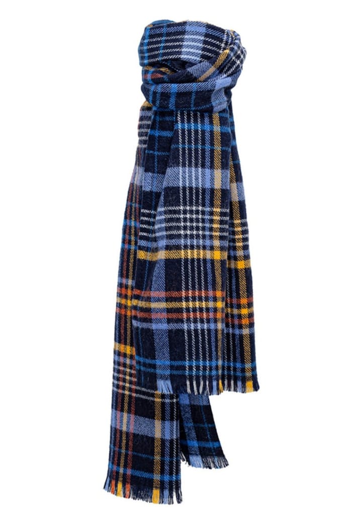Der M LARGO Schal von Monsieur Charli ist ein elegantes und praktisches Accessoire für den Winter. Dieser Schal wurde entwickelt, um Wärme und Komfort zu bieten und Ihrem Outfit einen Hauch von Stil hinzuzufügen. Hergestellt aus einem dicken und weichen Stoff, ist es ideal für kalte Tage. Der LARGO Schal von M verfügt über ein marineblaues kariertes Muster mit weißen, gelben und orangen Linien, die Ihrem Look einen Hauch von Farbe verleihen. Die Fransenkanten des Schals geben ein elegantes und anspruchsvolles Erscheinungsbild. Der Schal ist perfekt, um Ihren Hals vor der Kälte zu schützen und fügen Sie Ihrem Outfit ein Modeelement hinzu. -