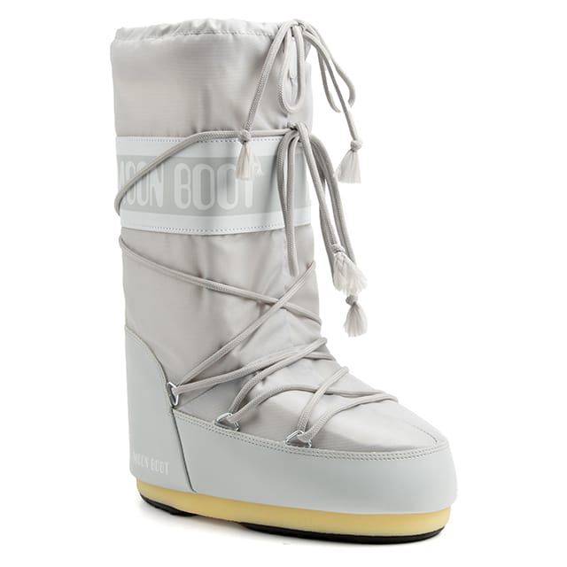Die ICON NYLON Schneestiefel der Marke Moon Boot sind für den Winter im Freien konzipiert. Diese robusten, funktionellen Stiefel verfügen über eine Gummisohle für guten Halt und eine Synthetikschaum-Innensohle für optimalen Komfort. Ihr synthetisches Schaumstofffutter sorgt für Wärmedämmung, während ihre Wasserdichtigkeit sie vor dem Wetter schützt. Ihre textile und synthetische Top ist langlebig und widerstandsfähig gegen kalte Wetterbedingungen. Die ICON NYLON sind in grau erhältlich, eine helle Farbe, die perfekt für den Winter ist. Diese Stiefel sind ideal für Wanderer, Skifahrer und Menschen, die gerne Zeit im Freien im Winter verbringen. -