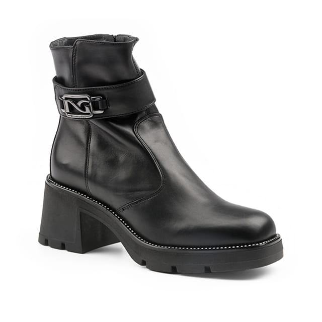 Nero Giardini Camerata: elegante schwarze Fersenstiefel mit Leder und Schmuckeinsätzen.