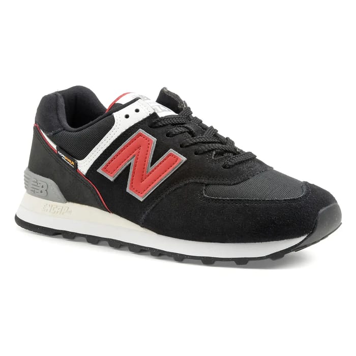 Der New Balance 574 ist ein ikonischer Schuh, der Stil und Alltagskomfort vereint. Entworfen mit einem marineblauen Textil Wildleder Top vereint dieser Sneaker Eleganz und Robustheit. Seine Gummisohle bietet diskrete Stabilität und sorgt für eine leichte Passform. Das textile Interieur sorgt für maximale Weichheit, während die abnehmbare Innensohle Komfortanpassung ermöglicht. Details wie das leuchtend rote Logo auf der Seite, die Registerkarte mit New Balance Label und die ordentlichen Oberflächen verstärken seinen modernen Look. Perfekt zum Wandern oder zur Freizeit, passt es in die Mode- und Trendpalette, ideal für einen lässigen Chic-Look oder Outfit. Saison für Saison erhält New Balance seinen unumstrittenen Platz in der Welt der Sportbekleidung und urbaner Mode. -