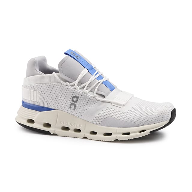 Entdecken Sie CLOUDNOVA von der Marke On running, die für Sportler entwickelt wurde, die die perfekte Balance zwischen Leistung und Komfort suchen. Dieser Textil- und Synthetik-Sneaker verfügt über ein atmungsaktives Oberteil mit Perforationen für eine optimale Belüftung, während das Textilfutter für extra Weichheit sorgt. Die abnehmbare textile Innensohle ermöglicht eine individuelle Anpassung an den Fuß. Die Gummisohle bietet soliden Schutz für verschiedene Oberflächen. Die CLOUDNOVA sind in weiß erhältlich, mit blauen Akzenten auf den Schnürsenkeln und um den Bund des Knöchelbereichs. Das "ON"-Logo ist in der Nähe des Mittelfußbereichs sichtbar. Die CLOUDTEC, dicke und beige Sohlentechnologie, bietet optimale Dämpfung und Unterstützung für körperliche Aktivität. Die CLOUDNOVA sind ideal für Wander-, Freizeit- oder einfach für einen sportlichen Tag. -