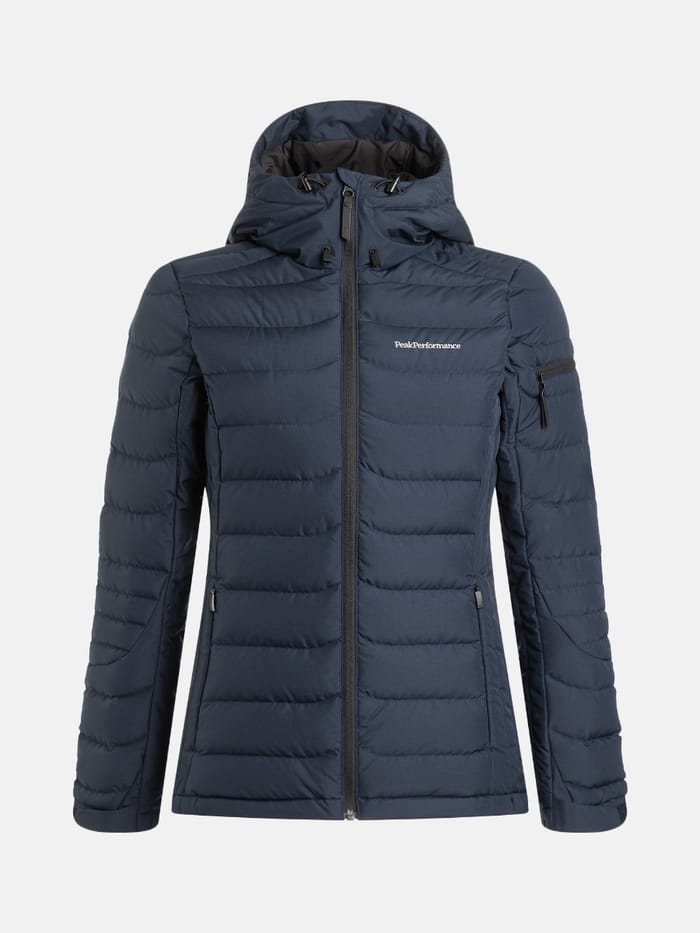Die Peak Performance W's Down Ski Jacket ist eine Skijacke für Outdoor-Aktivitäten im Winter. Hergestellt aus 100% Polyester, bietet es Wasserdichtigkeit und Witterungsbeständigkeit. Das Futter besteht zu 90% aus Daunen und zu 10% aus Federn, wodurch eine optimale Wärme gewährleistet ist. Die Jacke verfügt über einen durchgehenden Reißverschluss auf der Vorderseite sowie eine Kapuze befestigt, um das Gesicht und die Ohren vor der Kälte zu schützen. Die Fronttaschen verfügen über Reißverschlüsse und bieten Platz für die Aufbewahrung von Skiartikeln. Die Ärmel sind mit verstellbaren Gummibändern oder Klettbändern für eine perfekte Passform ausgestattet. Die Jacke ist in Marineblau erhältlich und ist für Wintersport, Outdoor-Aktivitäten und Skifahren konzipiert. -