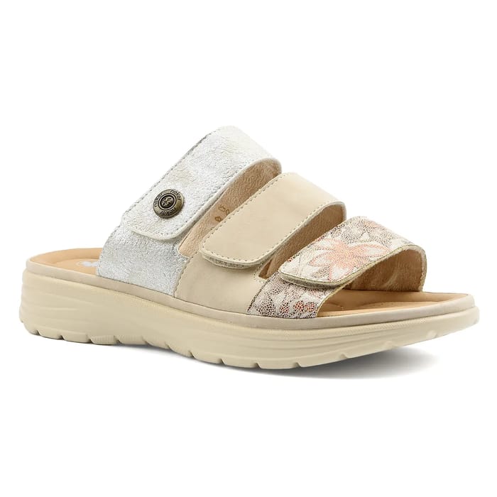 V8583 von Rieker: Synthetischer Badeschuh für Männer und Frauen. Dieser lässige und komfortable Schuh ist ideal für Ausflüge, für den Alltag oder zur Entspannung im Sommer. Die Ferse misst 35 mm und besteht aus Synthetik. Die Einlegesohle und Laufsohle sind ebenfalls aus Synthetik gefertigt. Das Futter ist aus Textil gefertigt und sorgt für ein einzigartiges Gefühl von Komfort. Der Schuh ist in mehreren Farben erhältlich. Details dieses synthetischen Maultier gehören zwei breite Streifen: eine in Silber Metall mit dekorativen Knopf und gedruckten Text, und eine andere mit einem floralen Spitze Muster in weiß und rosa. Der Schuh ist leicht und flexibel und bietet optimalen Komfort für Ausflüge oder den täglichen Gebrauch. -