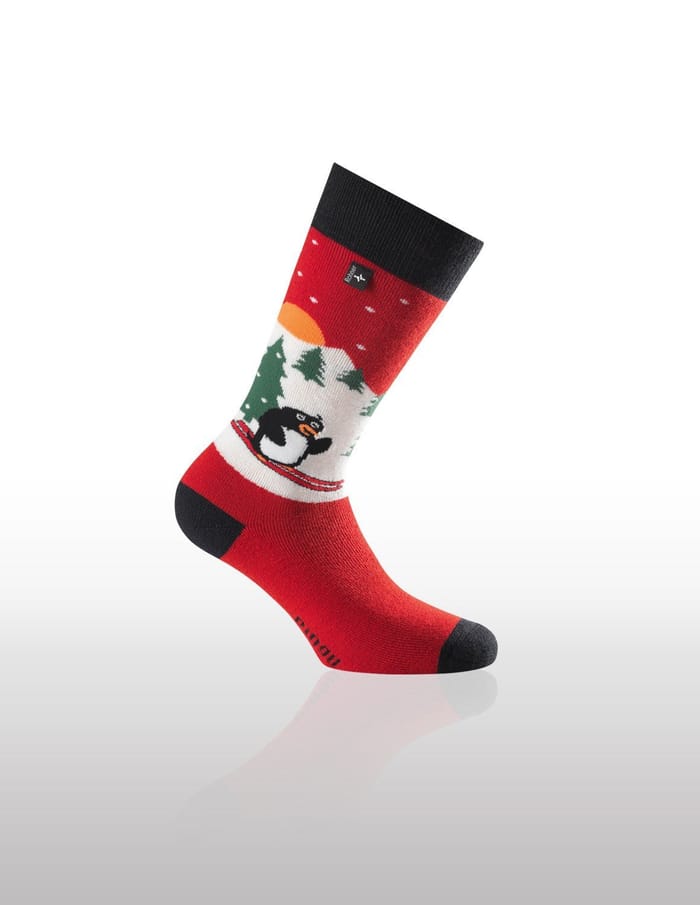 Entdecken Sie die K's Pinguin Skisocken der Marke Rohner, die für Wintersportler entworfen wurden. Diese funktionellen und sportlichen Socken sind ideal für niedrige Temperaturen. Ihre Wolle und Synthetik Ober- und Oberstoff bieten eine optimale Isolierung und garantieren konstante Wärme während Ihrer Skitouren. Die farbenfrohe Illustration eines Pinguins mit Skibrille und Eisachsen, umgeben von grünen Kiefern und Schneeflocken auf weißem Hintergrund, verleiht diesen Socken einen Hauch von Persönlichkeit. Die rote Farbe wird durch eine kleine orange Sonne hinter den Bäumen sichtbar akzentuiert, wodurch ein angenehmer Kontrast entsteht. Die Details dieser Skisocken sind sorgfältig durchdacht, um optimalen Komfort zu bieten. Die Socke ist mit einem Etikett auf der Oberseite in der Nähe des Ellbogens ausgestattet und verleiht Ihrem Ski-Outfit einen Hauch von Stil. Die K's Pinguin Socken von Rohner sind perfekt für Wintersportler, die Stil und Funktionalität kombinieren wollen. -