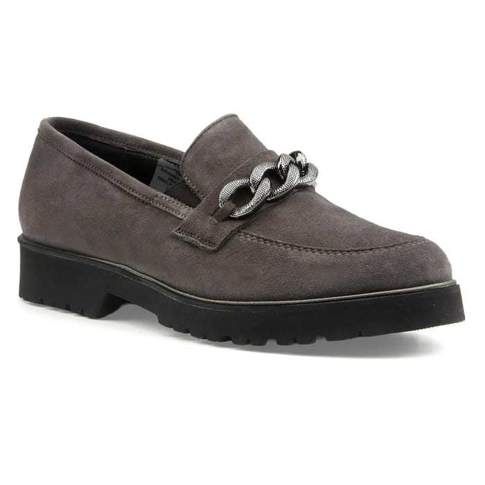 Die ELENA City Loafer der Marke Semler sind für eine tägliche Kleidung ausgelegt, die sowohl für Ausflüge als auch für Arbeiten geeignet ist. Diese stilvollen und vielseitigen Laiber sind in grau erhältlich, eine neutrale Farbe, die zu allen Kleiderstilen passt. Ihr Stil zeichnet sich durch außergewöhnliche Leichtigkeit und Komfort, dank ihrer ordentlichen Design und Qualität Material. Die ELENA Loafers verfügen über einen raffinierten Stil, mit silbernen Ketten auf dem Vamp, die einen Hauch von Klasse hinzufügen. Die an den Kanten sichtbaren Nähte verstärken ihr elegantes Erscheinungsbild. Die Innenseite der Schuhe ist weich und komfortabel, so dass es eine ideale Wahl für Träger, die Komfort bevorzugen, während wollen stilvoll bleiben. Die ELENA Lafter sind mit einem dicken schwarzen Gummiabsatz ausgestattet, der Stabilität und Haltbarkeit bietet. -
