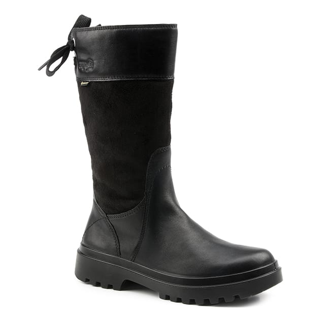 Warmer Stiefel aus Leder und Textil mit Reißverschluss und Schnürung