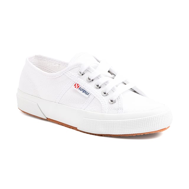 Die Superga 2750 sind lässige, leichte Canvas-Schuhe, perfekt für Sommerausflüge. Für optimalen Komfort konzipiert, verfügen sie über eine Gummisohle und Textilfutter. Ihre Leinwand oben und Stiel gibt ihnen außergewöhnliche Atmungsaktivität. Details dieser Schuhe sind ein Canvas Sneaker und weiße Schnürsenkel. Die Hauptfarbe ist weiß, mit einem Hauch von Rot und Blau auf dem Logo "SUPERGA" auf der Seite sichtbar. Die Schuhe sind ideal für Freizeit und Ausflüge, bieten einen lässigen Stil und garantieren dank ihrer Atmungsaktivität und Komfort ein funktionales Erscheinungsbild. -