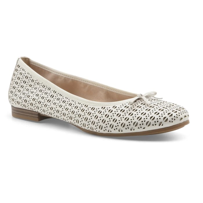 Diese Ballett-Wohnungen Alena Tamaris verbinden Eleganz und Einfachheit für einen zeitlosen Look. Entworfen aus perforiertem Leder, bieten sie eine raffinierte Note dank ihrer zart geschnittenen geometrischen Muster, während ein kleiner Zierknoten auf der Spitze eine feminine und subtile Note bringt. Ihre 10 mm lange Synthetiksohle sorgt für optimalen Komfort für den täglichen Einsatz, ob im Büro, bei lässigen Ausflügen oder in alltäglichen Momenten. Das Textilfutter und die Ledersohle erhöhen ihre Weichheit und Haltbarkeit. Sie sind in Weiß erhältlich und passen perfekt in einen schicken und vielseitigen Kleiderschrank, der den Geist des Tamaris widerspiegelt: Stil, Funktionalität und Weiblichkeit ohne Kompromisse vereint. Eine intelligente Wahl für diejenigen, die Schuhe suchen, die elegant und für alle Gelegenheiten geeignet sind. -