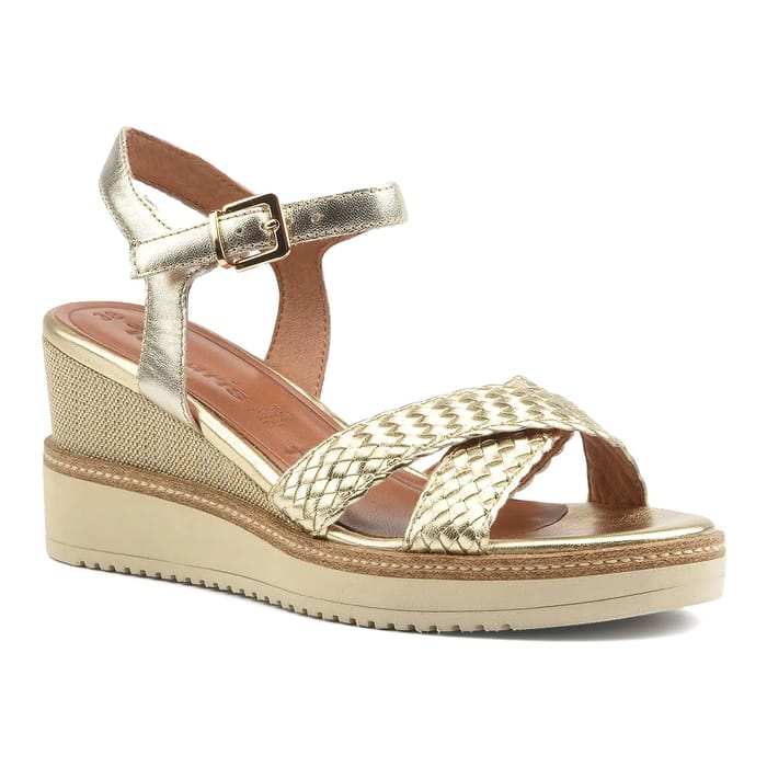 Entdecken Sie die Alis Sandalen der Marke Tamaris, eine perfekte Kombination aus Eleganz und Komfort. Diese Leder- und synthetischen Keilsandalen bieten einen trendigen femininen Stil, perfekt für Sommerausflüge oder Abende. Die Ferse misst 75 mm und bietet Stabilität und Höhe ideal für besondere Anlässe. Das Oberteil und das Oberteil sind aus Leder und Synthetik gefertigt und bieten eine außergewöhnliche Haltbarkeit und Flexibilität. Das Futter besteht aus Textil und sorgt für optimalen Komfort für den Fuß. Die Lederinnensohle sorgt für Weichheit und Flexibilität der Füße und bietet gleichzeitig zusätzlichen Schutz. Die Details dieser Alis Sandalen sind sorgfältig entwickelt, um Frauen zu gefallen. Die Goldfarbe ist ein eleganter Touch, der jedem Look einen Hauch von Raffinesse verleiht. Die Alis Sandalen sind ideal für sommerliche Anlässe, Ausflüge oder Abende und bieten unvergleichlichen Stil und Komfort. Die Sandalen Tamaris Alis bieten eine perfekte Mischung aus Eleganz, Komfort und Mode, wie in den Markendetails beschrieben. Sie sind eine intelligente Wahl für Frauen, die einen femininen und trendigen Stil suchen und gleichzeitig optimalen Komfort für die Füße bieten. -
