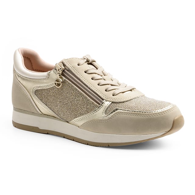 Daki, die Tamaris Sneakers, sind die ideale Wahl für Frauen, die eine perfekte Mischung aus Eleganz und Komfort suchen. Diese beige Sneaker sind für das tägliche Tragen konzipiert, egal ob zum Wandern, zur Freizeit oder für den Alltag. Ihr Low Sneakers Stil ist vielseitig und für jeden Anlass geeignet. Die Daki verfügen über ein textiles und synthetisches Oberteil, das eine Kombination aus Flexibilität und Festigkeit bietet. Das Textilfutter sorgt für extra Weichheit für den Fuß. Die textile und abnehmbare Innensohle ermöglicht eine individuelle Anpassung an Ihren Fuß. Die synthetische Sohle sorgt für Haltbarkeit und Verschleißfestigkeit. Der Daki verfügt auch über einen 25 mm Absatz, der ihnen einen eleganten und raffinierten Look verleiht. Zu den Details des Schuhs gehört ein Textil- und Synthetik-Sneaker, der einen Hauch von Stil und Modernität verleiht. Die weißen Schnürsenkel und Metallknöpfe runden das Set ab und verleihen dem Schuh ein stilvolles Erscheinungsbild. Die Daki sind entworfen, um die Bedürfnisse von Frauen auf der Suche nach einer Mode, Komfort und vielseitiges Produkt gerecht zu werden. Sie sind ideal für Frauen, die modisch bleiben und dabei optimalen Komfort genießen möchten. Die Daki sind eine intelligente Wahl für Frauen, die einen Schuh suchen, der ihren täglichen Bedürfnissen entspricht und gleichzeitig stilvoll und anspruchsvoll ist. -