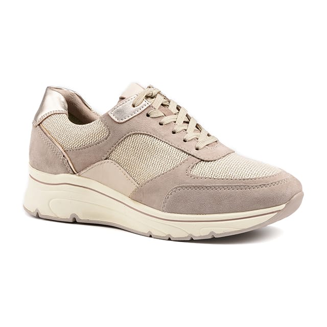 Die Vinny der Marke Tamaris sind Sneakers mit Keilabsätzen, die Eleganz und Komfort verbinden. Ihr Oberteil und Stiel bestehen aus Nubuk und Textil, während das Futter aus Textil besteht. Die Einlegesohlen sind aus abnehmbarem Leder gefertigt und bieten dem Fuß zusätzliche Weichheit. Die Laufsohlen sind aus synthetischem Material gefertigt und garantieren eine optimale Haltbarkeit. Die Fersen sind 35 mm groß und bieten eine ideale Höhe für Ausflüge oder Freizeit. Zu den Details dieser Sneakers gehören ein Samtleder und ein Textil-Sneaker, der dem Set eine elegante Note verleiht. Die beige Farbe ist ideal für ein tägliches Outfit oder für einen modischen Ausflug. Der Vinny Tamaris wurde entwickelt, um optimalen Komfort zu bieten und gleichzeitig modisch zu sein. -