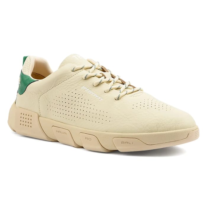 Die Gedeone Schuhe der Marke Tbs sind klassische und vielseitige Schuhe für den täglichen Gebrauch. Sie verfügen über ein Lederoberteil und ein Textilfutter. Ihre Ledersohle ist abnehmbar und bietet zusätzliche Flexibilität. Die Gummiaußensohlen garantieren Haltbarkeit und Verschleißfestigkeit. Die Gedeone Schuhe sind in einer einzigen Farbe erhältlich, beige, und sind mit Lederdetails, wie Perforationen für eine bessere Belüftung geschmückt. Die grünen Akzente an der Ferse und das Logo "SPEKKCRAFT" in weißen Buchstaben in der Nähe der Schnürsenkel verleihen einen Hauch von Stil. Die drei Gummisohlen mit den Bezeichnungen "HAWAII", "RIO" und "BALI" bieten optimalen Komfort und Passform. Die Gedeone Schuhe sind aufgrund ihres Komforts, ihrer Passform und Langlebigkeit ideal für Ausflüge, im Büro oder im Alltag. -