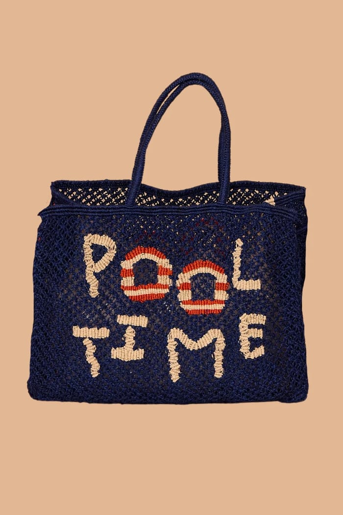 Tasche in Jute von der Marke The Jacksons, von Barry entworfen, ist ein Strand-und Sommer-Accessoire perfekt für Ausflüge. Dieser blaue Strohsack misst 45 x 35 x 16 cm und ist aus 100% Jute. Es hat eine Jute Tote, die einen einzigartigen Stil und eine angenehme Leichtigkeit bietet. Die Tasche ist ideal für das Tragen Ihrer Habseligkeiten und zeigt Ihre Liebe für den Strand und Sommer Ausflüge. Das Strand-inspirierte Design zeichnet sich durch weiße und rote Häkelbuchstaben aus, die das Wort "POOL TIME" und ein Häkelboje-Muster bilden. Die blauen Jute Griffe sind auch für konsequenten Stil und praktische Funktionalität ausgelegt. Diese Tasche ist eine tolle Option für Sommerausflüge, Strände und Strandpartys. -