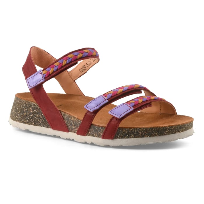 Think KOAK 1305 Sandale für Stil und Alltagskomfort. Diese flachen Sandalen zeichnen sich durch ihre lässige Eleganz aus, ideal für Urlaub, Strandtage oder den Alltag im Sommer. Hergestellt aus chromfreiem Leder und Samtleder, verbinden sie Weichheit und Stärke, während das Futter aus pflanzlichem Leder und die Innensohle für optimalen Komfort und erhöhte Atmungsaktivität sorgen. Der 30 mm Absatz bringt einen Hauch von Tempo und sorgt für diskrete Stabilität. Die praktischen Klettverschlüsse machen es einfach, sich anzupassen und zu entfernen, perfekt für eine einfache und schnelle Bedienung. Die Gummisohle, robust und rutschfest, sorgt für einen guten Halt, ohne auf Leichtigkeit zu verzichten. Erhältlich in rot passt diese Sandale perfekt in eine Sommergarderobe und verbindet Funktionalität und Trend mit einem Design, das modern und zeitlos ist. -