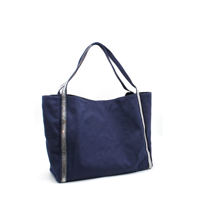 Der CABAS EUNICE der Marke Vimoda ist ein Navy-Baumwollrucksack, der Eleganz und Funktionalität vereint. Entworfen für Shopping, Freizeit und Ausflüge, bietet diese Tasche bequemen Stauraum und bequemen Transport. Seine zwei langen Baumwollgriffe verleihen ihm einen raffinierten Look, während die silbernen Pailletten entlang der Griffe einen Hauch von Raffinesse verleihen. Mit seinen Abmessungen von 30 x 50 x 16 cm ist diese Tasche perfekt, um Ihre Sachen elegant und bequem zu tragen. -