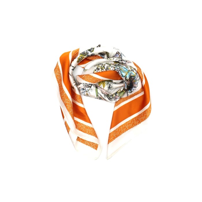 Dieser Schal von Vimoda W aus dem Jahr 19055 vereint Eleganz und Funktionalität, um Ihren Winterstil zu verbessern. Entworfen in einem seidigen Stoff, verfügt es über ein dynamisches gestreiftes Muster in Orange und Weiß, das durch zarte florale Stickereien in verschiedenen Schattierungen verstärkt wird. Perfekt für kalte Tage, sorgt dieser Schal für Wärme und Komfort und bringt gleichzeitig einen stilvollen Touch in Ihre Outfits. Ideal für den Alltag oder einen dressigen Ausflug, passt es leicht in eine Tasche und bleibt ein unverzichtbares Accessoire für einen Look, der modern und zeitlos ist. -
